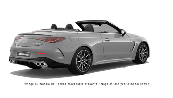 Cash purchase offer is based on the 2026 MERCEDES-BENZ CLE AMG 53 4MATIC Cabriolet AWD (CLE53A4 956_740) model, with 3L 6 cyl. engine and 9 speed Automatic transmission. Cash purchase selling price is $128,575.85 (plus taxes). Cash purchase selling price ($128,575.85) includes: Freight and PDI ($5,050.00), Admin Fee ($695.00), MBB Secure ($499.00), Winter Mats ($288.81), Wheel Locks ($238.92), Air conditioning excise tax ($100.00), Licensing Fee ($59.00), CarProof Fee ($41.50), Tire Duty ($27.15), OMVIC Fee ($22.00) including installation. Plus (HST) & Licensing. Finance offer is based on the 2026 MERCEDES-BENZ CLE AMG 53 4MATIC Cabriolet AWD (CLE53A4 956_740) model, with 3L 6 cyl. engine and 9 speed Automatic transmission. Finance selling price is $128,575.85 (plus taxes). Finance payments include: Freight and PDI ($5,050.00), Admin Fee ($695.00), MBB Secure ($499.00), Winter Mats ($288.81), Wheel Locks ($238.92), Air conditioning excise tax ($100.00), PPSA ($61.13), Licensing Fee ($59.00), CarProof Fee ($41.50), Tire Duty ($27.15), OMVIC Fee ($22.00) including installation. Finance offer is based on a 60 months term and 5.99% interest rate. 130 bi-weekly payments of $1,146.15 ($1,295.15 taxes included) with $0.00 cash down and $0.00 net trade in. Cash down payments are due upon vehicle delivery. Trade-in tax credits require proof of ownership. Finance total obligation is $168,369.50 (taxes included). Finance total cost of borrowing is $23,017.66. Annual Percentage Rate (APR) is 6.01%. Limited time purchase financing offer on approved credit. Some customers will not qualify. Rates and requirements may vary depending on credit worthiness. Payments and conditions may vary for a commercial use. All applicable taxes are calculated on the total amount prior to deduction of the down payment. Lease offer is based on the 2026 MERCEDES-BENZ CLE AMG 53 4MATIC Cabriolet AWD (CLE53A4 956_740) model, with 3L 6 cyl. engine and 9 speed Automatic transmission. Lease selling price is $128,628.98 (plus taxes). Lease payments include: Freight and PDI ($5,050.00), Admin Fee ($695.00), MBB Secure ($499.00), Winter Mats ($288.81), Wheel Locks ($238.92), Air conditioning excise tax ($100.00), Licensing Fee ($59.00), PPSA ($53.13), CarProof Fee ($41.50), Tire Duty ($27.15), OMVIC Fee ($22.00) including installation. Lease offer is based on a 48 months term and 5.99% interest rate. 104 bi-weekly payments of $903.46 ($1,020.91 taxes included) with $0.00 cash down and $0.00 net trade in. $0.00 down payment and tax on down payment, $0.00 net trade-in and $1,020.91 first payment are due at lease inception. Total amount due at lease inception is $3,270.91 ($0.00 down payment, Security deposit ($2,250.00), First payment ($1,020.91) and (HST) $0.00). Trade-in tax credits require proof of ownership. Lease offer is based on a 12000 kilometer allowance per year. $0.30 fee per excess kilometer will apply. Estimated vehicle residual value is $57,130.60. An option to purchase at lease end (Buy Back Value) of $57,130.60 may be available. A security deposit might be required. Limited time leasing offer on approved credit. Some customers will not qualify. Rates and requirements may vary depending on credit worthiness. Payments and conditions may vary for a commercial use. Taxes on initial cash down and after tax rebates (including government rebate) are excluded and must be paid upon delivery. Lease total obligation is $108,424.64 (taxes included). Lease total cost of borrowing is $22,461.46. Annual Percentage Rate (APR) is 6.01%. The illustrated vehicle is based on the 2026 MERCEDES-BENZ CLE AMG 53 4MATIC Cabriolet AWD (CLE53A4 d302d281abb2) model, with 3L 6 cyl. engine and 9 speed Automatic transmission. The illustrated vehicle's cash purchase selling price is $128,575.85. While every reasonable effort is made to ensure the accuracy of this information, we are not responsible for any errors or omissions contained on these pages. Please verify all information and pricing with a sales representative or ask online. The dealership reserves the right to make changes at any time, without notice, to the prices, rates, models, materials, equipment, specifications, and availability, or to discontinue models or equipment. Vehicle trade-ins are subject to dealer's approval. Trade-in tax credits require proof of ownership. Luxury tax included (where applicable).