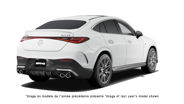 Cash purchase offer is based on the 2026 MERCEDES-BENZ GLC Coupe AMG 43C 4MATIC AWD (GLC43C4M 1afebe880214) model, with 2L 4 cyl. engine and 9 speed Automatic transmission. Cash purchase selling price is $106,309.85 (plus taxes). Cash purchase selling price ($106,309.85) includes: Freight and PDI ($4,995.00), Admin Fee ($695.00), MBB Secure ($499.00), Winter Mats ($288.81), Wheel Locks ($238.92), Air conditioning excise tax ($100.00), Licensing Fee ($59.00), CarProof Fee ($41.50), Tire Duty ($27.15), OMVIC Fee ($22.00) including installation. Plus (HST) & Licensing. Finance offer is based on the 2026 MERCEDES-BENZ GLC Coupe AMG 43C 4MATIC AWD (GLC43C4M 1afebe880214) model, with 2L 4 cyl. engine and 9 speed Automatic transmission. Finance selling price is $106,309.85 (plus taxes). Finance payments include: Freight and PDI ($4,995.00), Admin Fee ($695.00), MBB Secure ($499.00), Winter Mats ($288.81), Wheel Locks ($238.92), Air conditioning excise tax ($100.00), PPSA ($61.13), Licensing Fee ($59.00), CarProof Fee ($41.50), Tire Duty ($27.15), OMVIC Fee ($22.00) including installation. Finance offer is based on a 60 months term and 7.64% interest rate. 130 bi-weekly payments of $985.57 ($1,113.69 taxes included) with $0.00 cash down and $0.00 net trade in. Cash down payments are due upon vehicle delivery. Trade-in tax credits require proof of ownership. Finance total obligation is $144,779.70 (taxes included). Finance total cost of borrowing is $24,588.44. Annual Percentage Rate (APR) is 7.66%. Limited time purchase financing offer on approved credit. Some customers will not qualify. Rates and requirements may vary depending on credit worthiness. Payments and conditions may vary for a commercial use. All applicable taxes are calculated on the total amount prior to deduction of the down payment. Lease offer is based on the 2026 MERCEDES-BENZ GLC Coupe AMG 43C 4MATIC AWD (GLC43C4M 1afebe880214) model, with 2L 4 cyl. engine and 9 speed Automatic transmission. Lease selling price is $106,362.98 (plus taxes). Lease payments include: Freight and PDI ($4,995.00), Admin Fee ($695.00), MBB Secure ($499.00), Winter Mats ($288.81), Wheel Locks ($238.92), Air conditioning excise tax ($100.00), Licensing Fee ($59.00), PPSA ($53.13), CarProof Fee ($41.50), Tire Duty ($27.15), OMVIC Fee ($22.00) including installation. Lease offer is based on a 48 months term and 7.64% interest rate. 104 bi-weekly payments of $840.15 ($949.37 taxes included) with $0.00 cash down and $0.00 net trade in. $0.00 down payment and tax on down payment, $0.00 net trade-in and $949.37 first payment are due at lease inception. Total amount due at lease inception is $3,049.37 ($0.00 down payment, Security deposit ($2,100.00), First payment ($949.37) and (HST) $0.00). Trade-in tax credits require proof of ownership. Lease offer is based on a 12000 kilometer allowance per year. $0.20 fee per excess kilometer will apply. Estimated vehicle residual value is $41,993.00. An option to purchase at lease end (Buy Back Value) of $41,993.00 may be available. A security deposit might be required. Limited time leasing offer on approved credit. Some customers will not qualify. Rates and requirements may vary depending on credit worthiness. Payments and conditions may vary for a commercial use. Taxes on initial cash down and after tax rebates (including government rebate) are excluded and must be paid upon delivery. Lease total obligation is $100,834.48 (taxes included). Lease total cost of borrowing is $23,005.62. Annual Percentage Rate (APR) is 7.66%. The illustrated vehicle is based on the 2026 MERCEDES-BENZ GLC Coupe AMG 43C 4MATIC AWD (GLC43C4M 1afebe880214) model, with 2L 4 cyl. engine and 9 speed Automatic transmission. The illustrated vehicle's cash purchase selling price is $106,309.85. While every reasonable effort is made to ensure the accuracy of this information, we are not responsible for any errors or omissions contained on these pages. Please verify all information and pricing with a sales representative or ask online. The dealership reserves the right to make changes at any time, without notice, to the prices, rates, models, materials, equipment, specifications, and availability, or to discontinue models or equipment. Vehicle trade-ins are subject to dealer's approval. Trade-in tax credits require proof of ownership. Luxury tax included (where applicable).